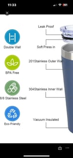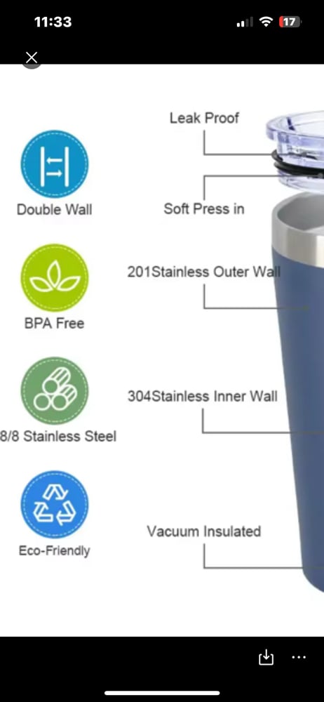 Leak proof, soft press, vacuum insulted. Eco friendly, stainless inner and outer protected. Further info in pics